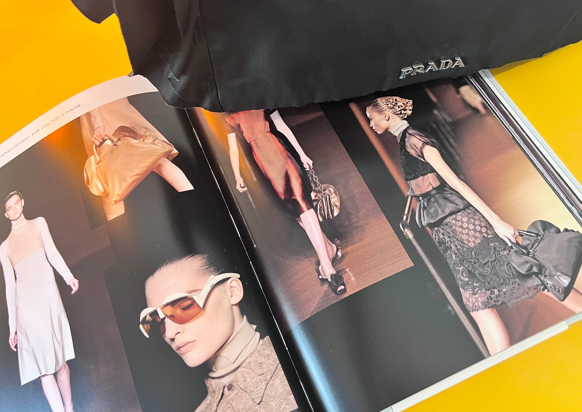Borsa Prada realizzata in nylon ed inserti in pelle.